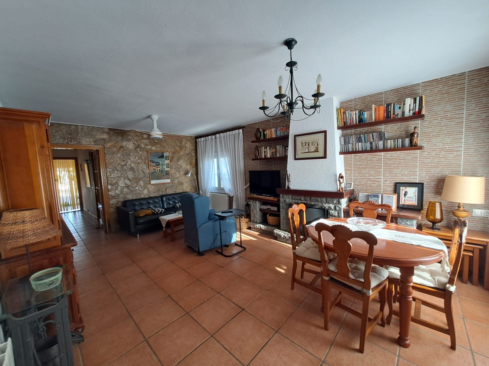 Luminoso salón-comedor con chimenea, que aporta carácter y calidez al espacio