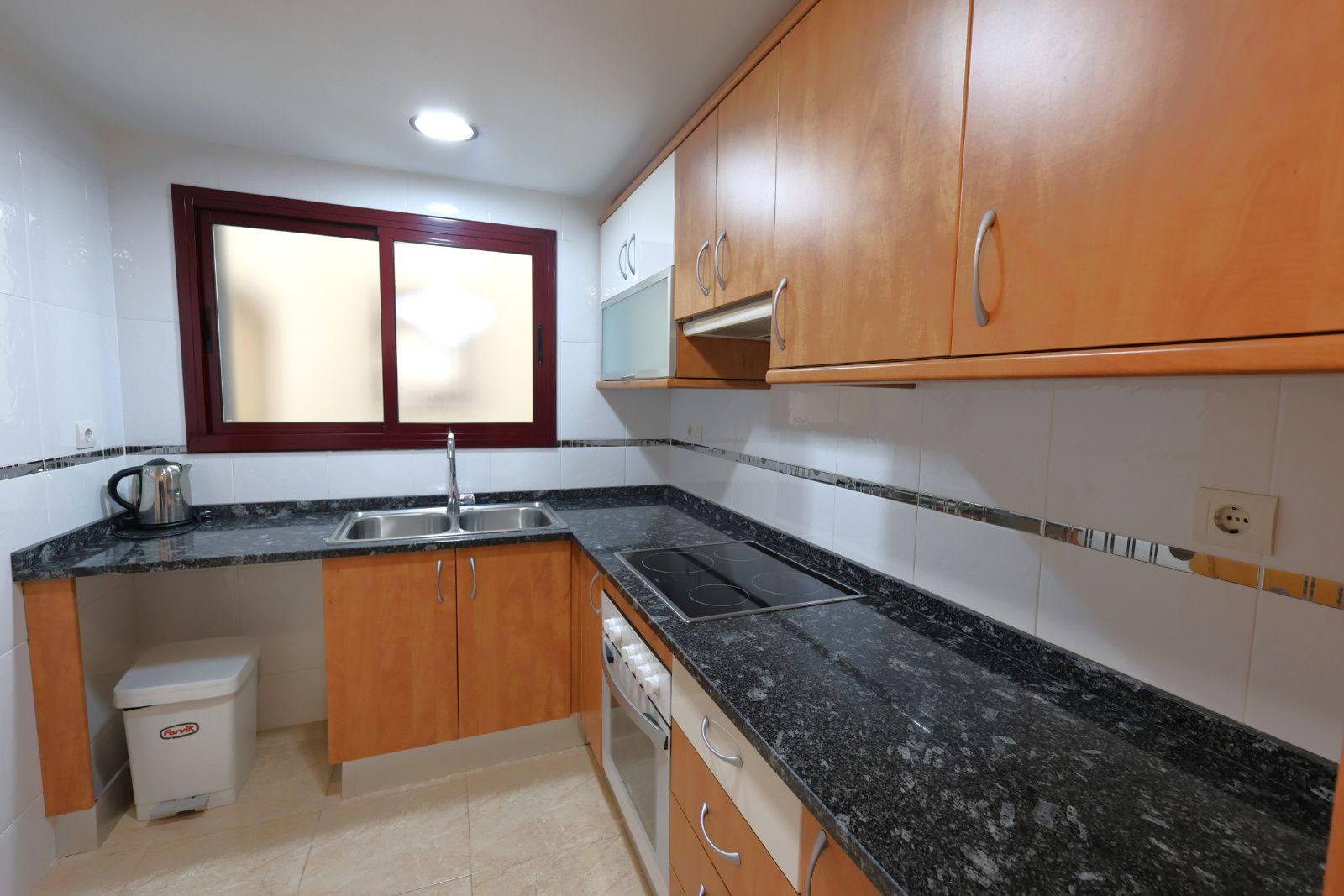 La cocina independiente, funcional y bien distribuida, cuenta con buen espacio de almacenaje y zona de trabajo cómoda, pensada para el día a día sin renunciar al orden ni a la practicidad.