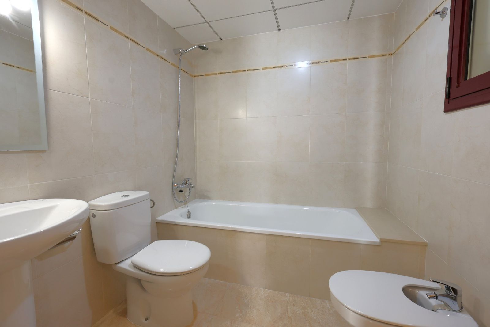 Cuenta con dos baños completos, uno de ellos con bañera, bien conservados y de estilo neutro, listos para entrar a vivir.
