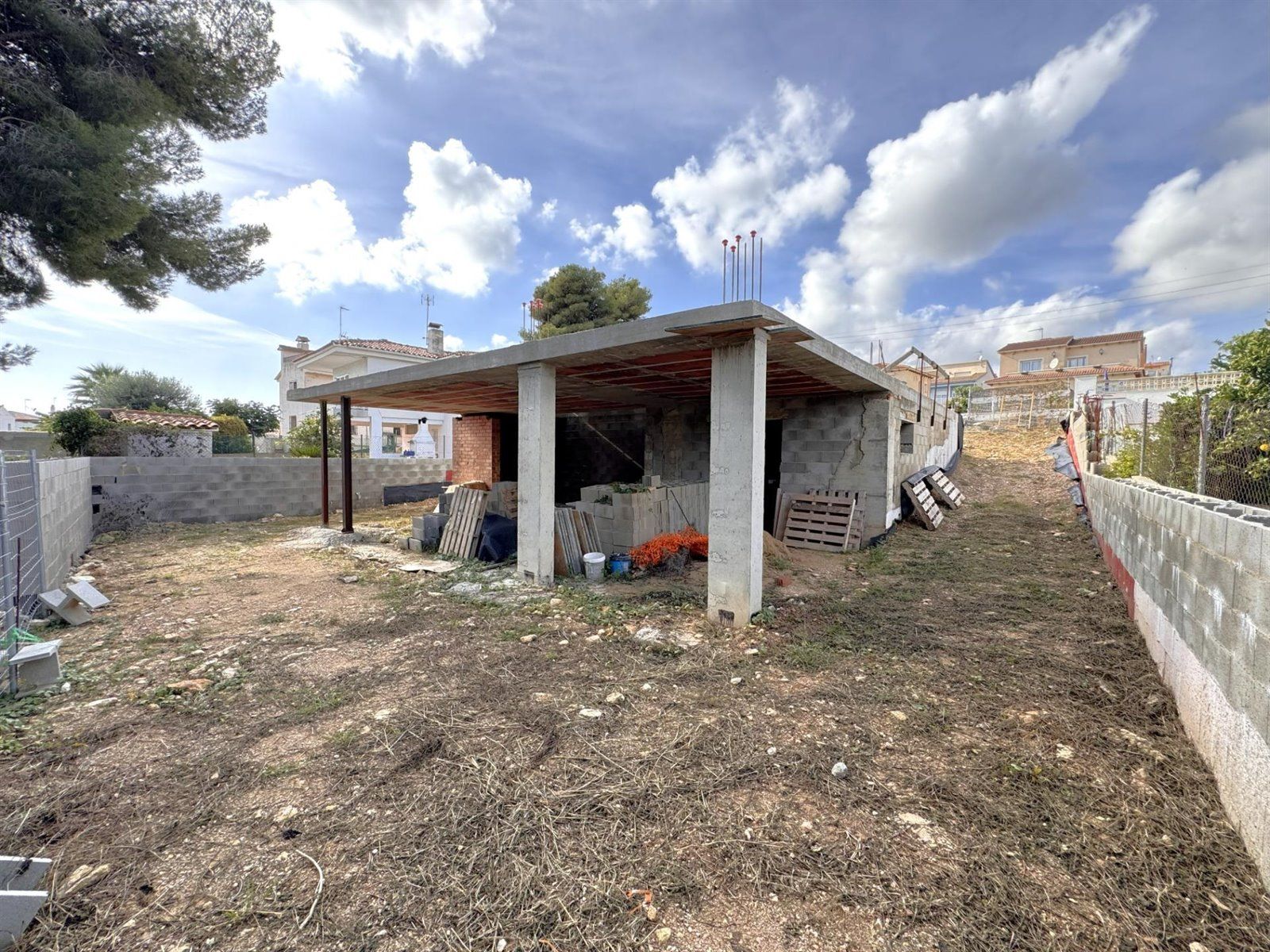 ESPECTACULAR VIVIENDA INDEPENDIENTE DE DISEÑO – OBRA NUEVA CON PROYECTO PAGADO Y LICENCIAS EN VIGOR..Te presento una oportunidad única para quienes sueñan con estrenar una casa contemporánea, elegante y pensada para disfrutar cada rincón..Esta vivienda unifamiliar independiente se encuentra en plena construcción, con la estructura avanzada y todos los trámites más costosos ya pagados y aprobados. Un camino adelantado que garantiza seguridad, tranquilidad y un ahorro significativo para el comprador...🌿 LA PARCELA: AMPLITUD, LUMINOSIDAD Y PRIVACIDAD..La parcela se sitúa en un entorno residencial tranquilo, rodeado de naturaleza y con vistas despejadas. El terreno permite crear zonas ajardinadas, piscina, espacios de descanso y cualquier diseño paisajístico que la propiedad pueda imaginar...La estructura ya ejecutada muestra una base sólida, con cimentación y forjados finalizados, dando forma a una vivienda moderna y arquitectónicamente singular...🏡 DISEÑO DE LA VIVIENDA (SEGÚN PROYECTO Y RENDERS INCLUIDOS)..El proyecto, ya pagado y firmado por arquitecto, desarrolla una vivienda independiente de líneas minimalistas, volúmenes limpios y una estética que combina blanco puro, piedra natural y grandes ventanales que inundan el interior de luz...PLANTA PRINCIPAL..Gran salón-comedor de concepto abierto, con techos altos y un diseño espectacular de vigas vistas blancas...Cocina integrada de estilo contemporáneo, funcional, luminosa y con grandes ventanales al exterior...Amplias terrazas parcialmente cubiertas, ideales para crear zonas lounge y comedor exterior...Transición perfecta entre interior–exterior gracias a carpinterías de gran formato...PLANTA INFERIOR / ACCESO..Espacio destinado a garaje, zona de almacenaje o desarrollo adicional según necesidades...Acceso mediante escalinata elegante que refuerza la presencia arquitectónica de la casa...⭐ CARACTERÍSTICAS VALIOSAS YA INCLUIDAS Y PAGADAS..Una joya para cualquier comprador o inversor, porque esta propiedad incluye lo más difícil (y costoso) ya resuelto:..✔ Permiso de obras pagado.✔ Proyecto de arquitectura completo y pagado.✔ Arquitecto y dirección técnica pagados hasta la fase actual.✔ Luz definitiva dada de alta y pagada.✔ Agua definitiva dada de alta y pagada.✔ Licencia de obras vigente y pagada – con un año más de validez..Esto significa que el comprador podrá continuar las obras sin contratiempos, sin trámites retrasados y con todas las garantías legales y urbanísticas...🧱 ESTADO ACTUAL DE LA OBRA (SEGÚN FOTOS Y VÍDEO)..Forjado terminado...Muros perimetrales estructurales ejecutados...Preparación del terreno lateral y trasero...Perímetro preparado con protección de lámina drenante...Espacios ya definidos según el proyecto básico...Todo ello permite visualizar con claridad el volumen y las posibilidades de la vivienda final...🔮 UNA CASA CON ALMA Y PROYECCIÓN DE FUTURO..Esta propiedad no es solo una obra en marcha: es una visión..El comprador puede seguir el proyecto tal como está concebido —con una estética moderna que enamora— o personalizar acabados y distribuciones según gustos. Es el equilibrio perfecto entre libertad creativa y trabajo ya avanzado...Ideal para quien desea una casa singular, luminosa, con personalidad arquitectónica y rodeada de naturaleza sin renunciar a la comodidad...✨ No dejes escapar esta oportunidad única..Las viviendas con este potencial y tanto camino adelantado no duran mucho en el mercado...📞 Ven a verla y contacta con nosotros..Estaremos encantados de acompañarte y mostrarte en persona todo lo que esta maravillosa propiedad puede ofrecerte.